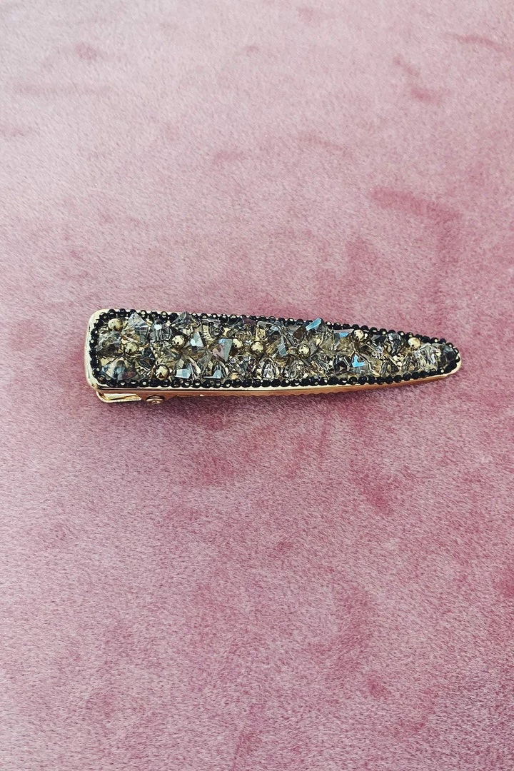 The Black and Gold Hair Clip creates the ultimate statement. It features a unique crystal design with a gold accent colour.