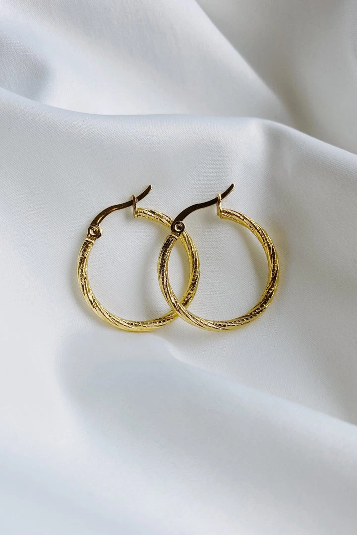 Calliso Earrings are a stunning addition to your outfit. Designed to flatter your face this design is available in four size options. Made from gold hardware.