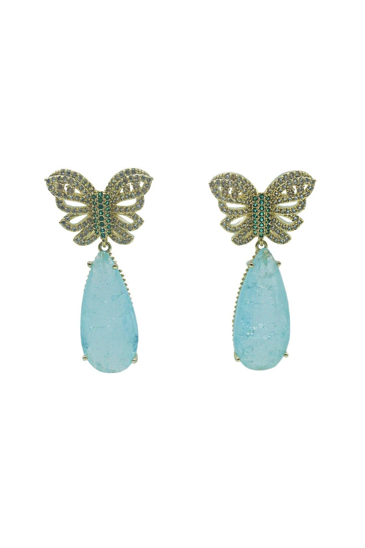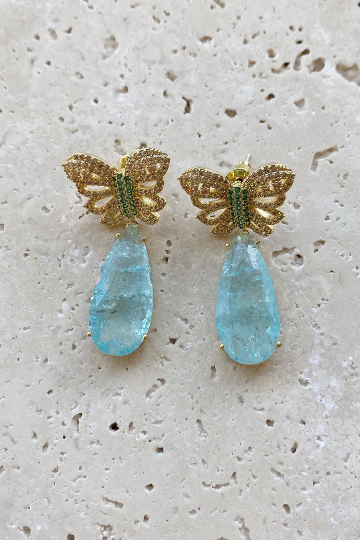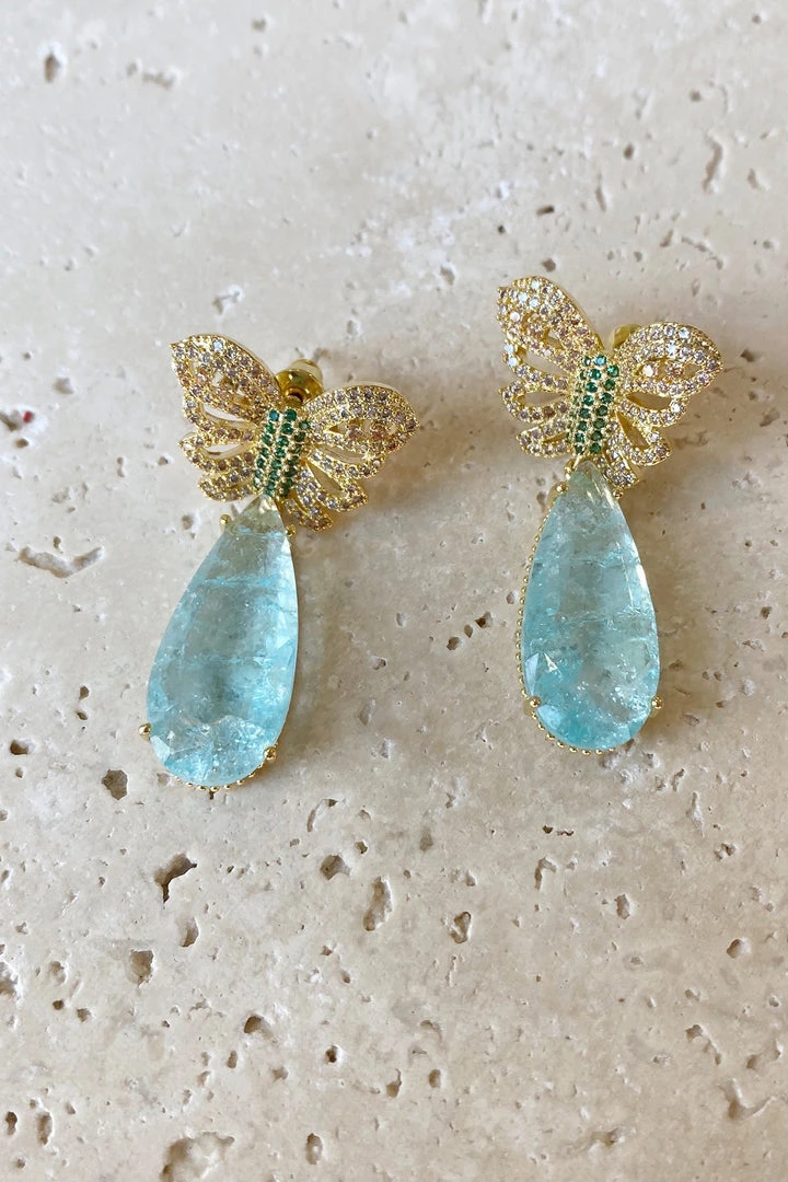 The Lulu Baby Blue Drop Butterfly Earrings will be your best accessory of the night! Including stunning baby blue coloured crystal with butterfly studs, you will love these paired with any dress.