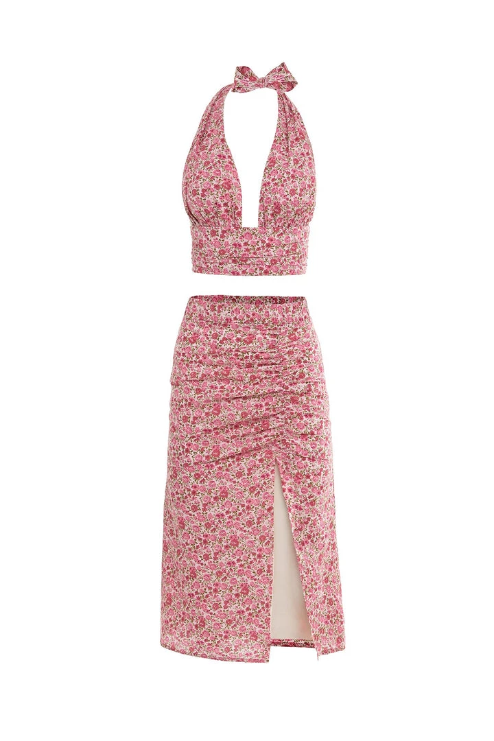A springtime essential. The Melina Cropped Top channels modern romance with its floral fabric, low v-neckline, and open back. Match this crop perfectly with the Melina Set for an alternative look.Â