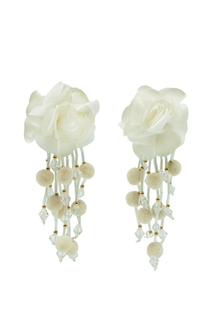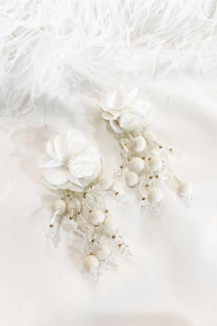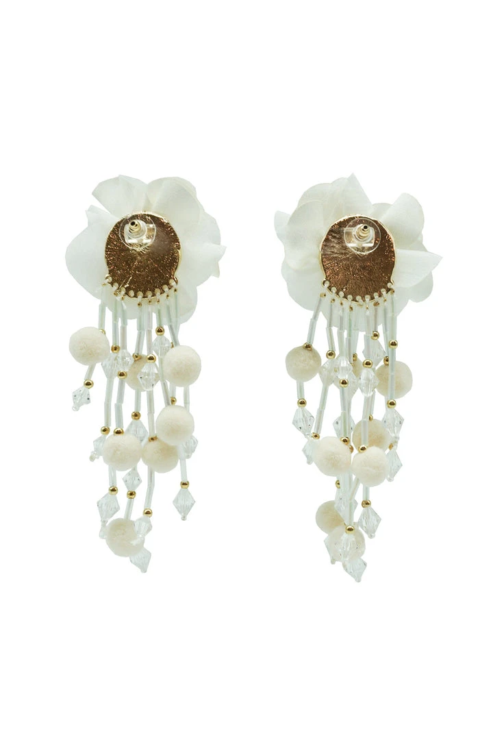 The Shailee White Flower Drop Earrings are one of many new additions to our earring collection. Embellished with mini beads and statement flowers, these earrings will be sure to make a statement.Â
