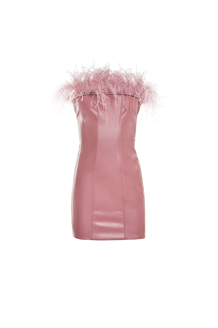 Embrace modernity with the Remi Dress. This tight-fitted mini features a feather accent with a dainty diamante trim, paneled structure, and pink hue for a stand-out look. A fashion-forward statement piece that will exceed all expectations.
