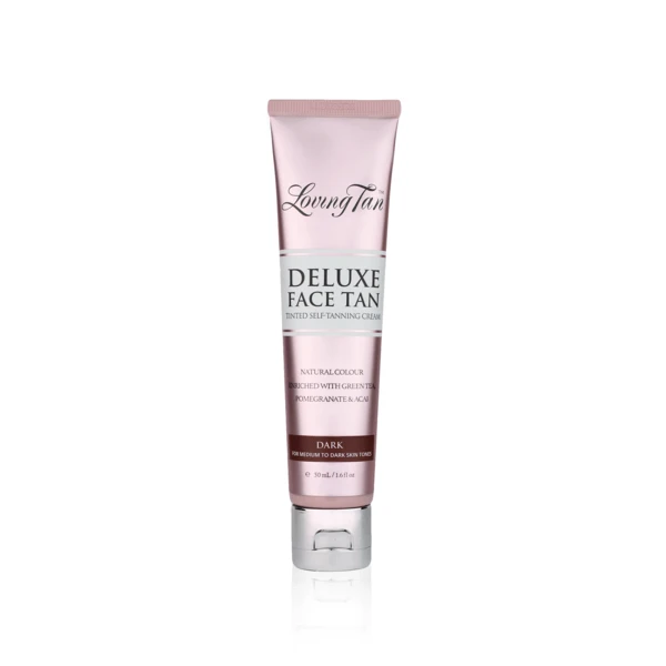 Created specifically for your face and décolleté, Loving Tan’s Deluxe Face Tan will leave your skin feeling soft, smooth and supple with the perfect sun-kissed glow. This formula is infused with Aloe Vera, Green Tea, Pomegranate & Acai extracts to enhance your complexion while a natural & luminous tan develops. Lightweight and containing a built in colour guide, it makes application perfect every time. Best suited for medium to dark skin tones. Â